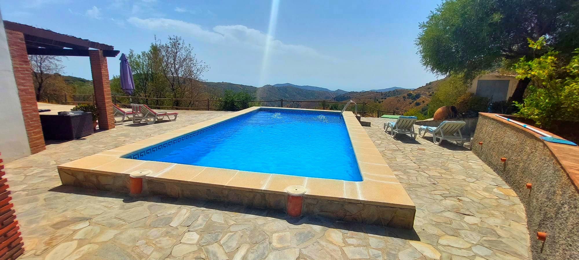 Built in classic Mediterranean finca style, it combines rustic charm with timeless architecture. Outside, a generous pool (9x5 m, 1.30–1.90 m deep) basks in sun from dawn to dusk, with loungers, a shaded pergola for meals, and terraces overlooking the mountains—ideal for long lunches or sunset drinks.